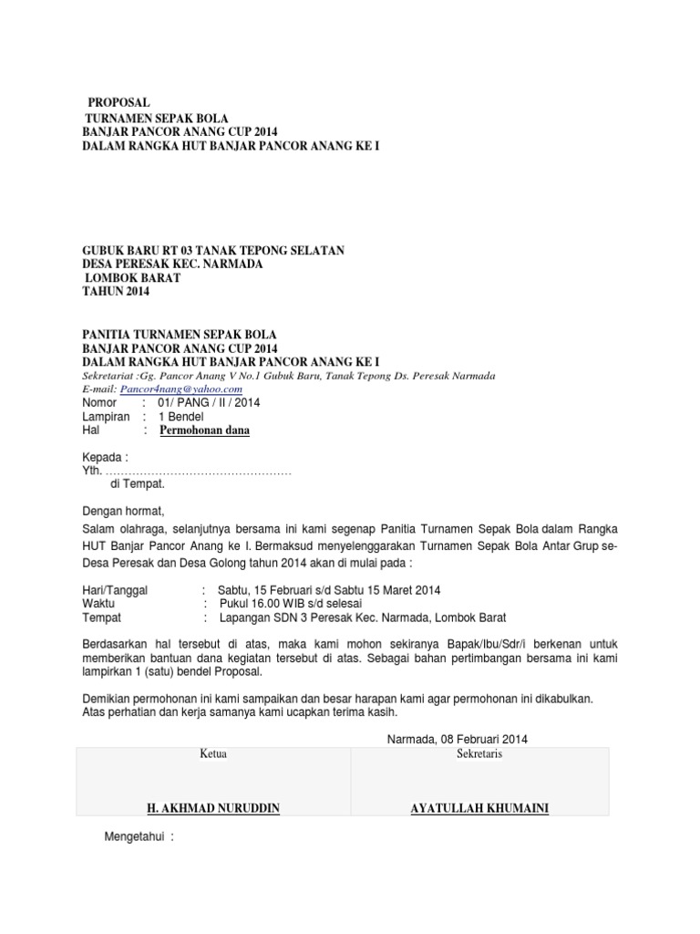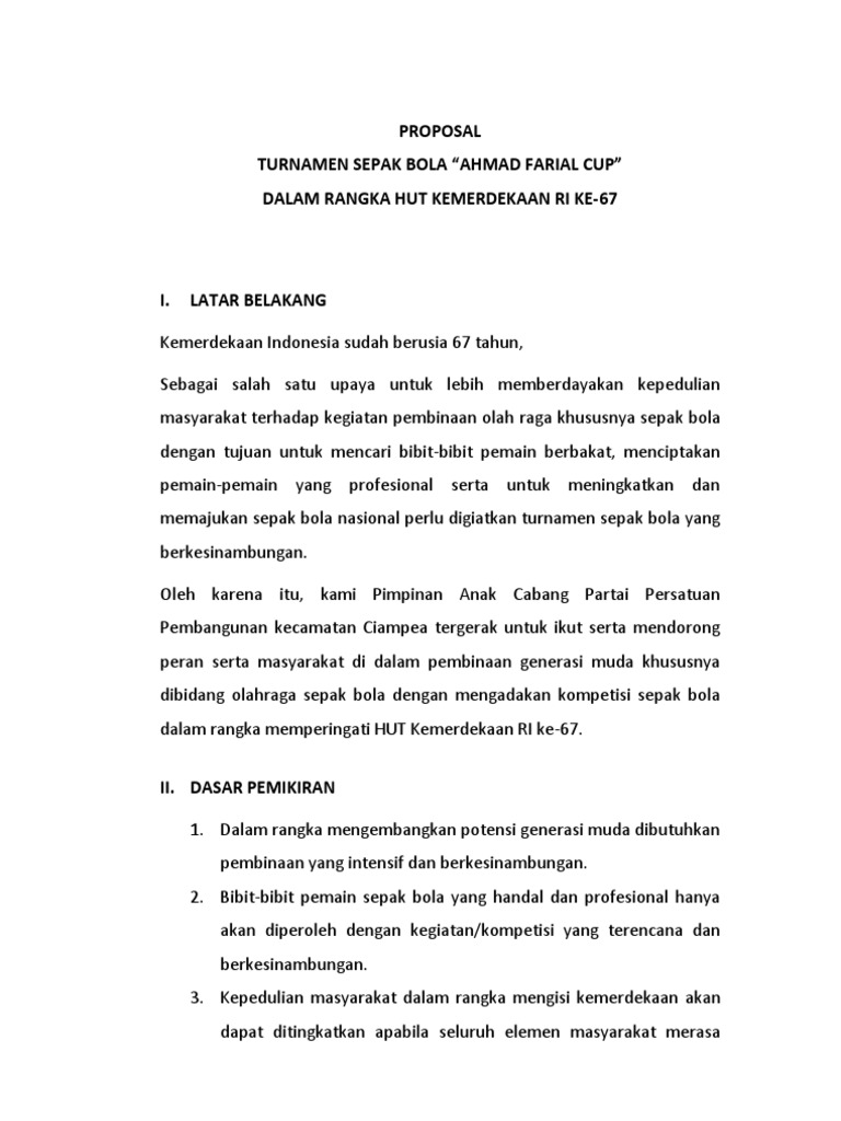 Proposal Sponsorship Turnament By Artoio Gomes Issuu from image.isu.pub Proposal turnamen sepak bola doc. We did not find results for: Check spelling or type a new query. Maybe you would like to learn more about one of these?