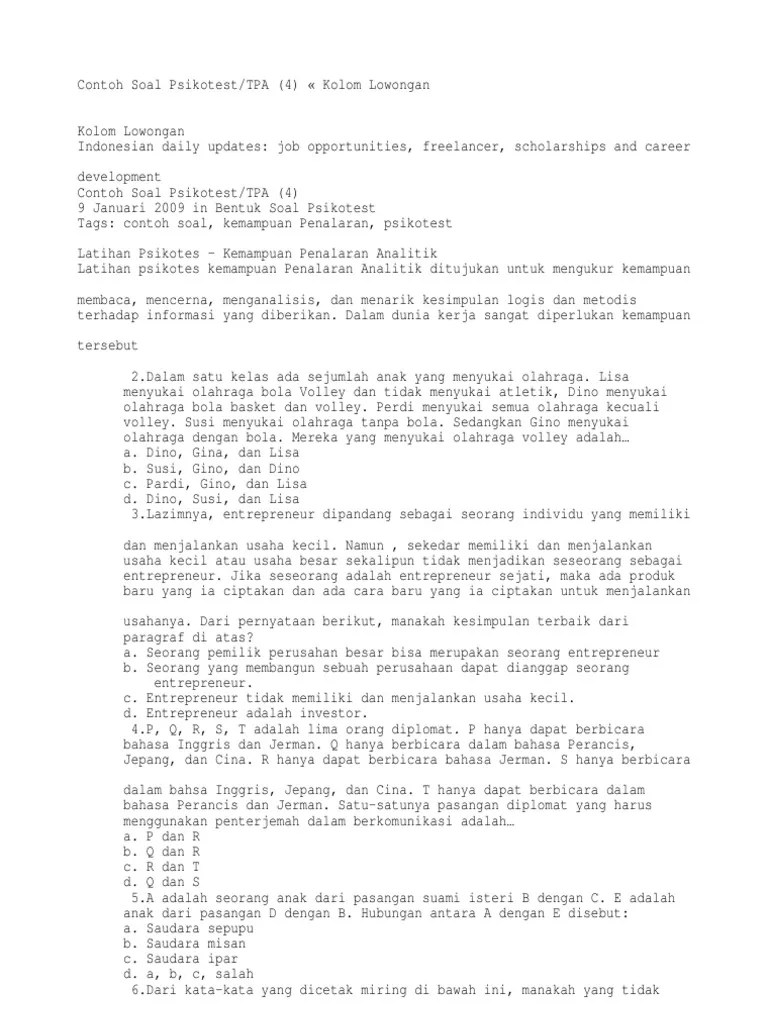 Bahkan, anda juga dapat mencari kumpulan soal tpa di internet / contoh soal tes potensi akademik online yang bisa didapatkan secara gratis. Try out ukai nasional 28 oktober 2017. Untuk itu, detikers perlu latihan mengerjakan . Mengikuti seleksi bersama masuk perguruan tinggi negeri (sbmptn) membutuhkan persiapan matang. Doc soal farmasi fatma wati academia edu.