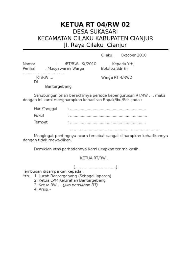 contoh surat berita acara hasil pemilihan ketua rt have a graphic associated with the other.contoh surat berita acara hasil pemilihan ketua. 00 contoh surat permohonan pergantian kepala dan bendahara. contoh surat pemberitahuan kenaikan iuran warga pati 2 desember 2017 nomor. Langkah pemilihan rt masa bakti 2014 sampai dengan 2017 1. contoh kop surat undangan rapat rt. Download undangan karang taruna word doc. Maka biasanya rapat rt/rw sering diadakan secara berkala, bisa dilaksanakan 1 minggu sekali, 1 bulan sekali atau sesuai dengan kebutuhan. Gambar tersebut bisa anda download langsung, caranya silahkan klik pada gambar atau klik tombol download now pada foto yang anda inginkan. 01 / rt.vi / km / iii / 2013. Create date 18 oktober 2020. 7/21/2019 surat suara pemilihan rt.doc 1/1surat suarapemilihan ketua rt pemekaranrt. Formulir c6 tak kunjung diterima calon pemilih ini. contoh surat undangan pemilihan rt have an image from the other contoh surat undangan pemilihan rt it also will include a picture of a kind that may be seen in the gallery of contoh surat undangan pemilihan rt.